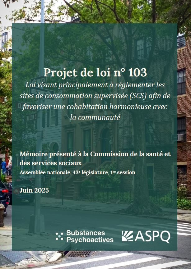 L’ASPQ a présenté ce mémoire Loi visant principalement à réglementer les sites de consommation supervisée (SCS) afin de favoriser une cohabitation harmonieuse avec la communauté à la Commission de la santé et des services sociaux en juin 2025.
